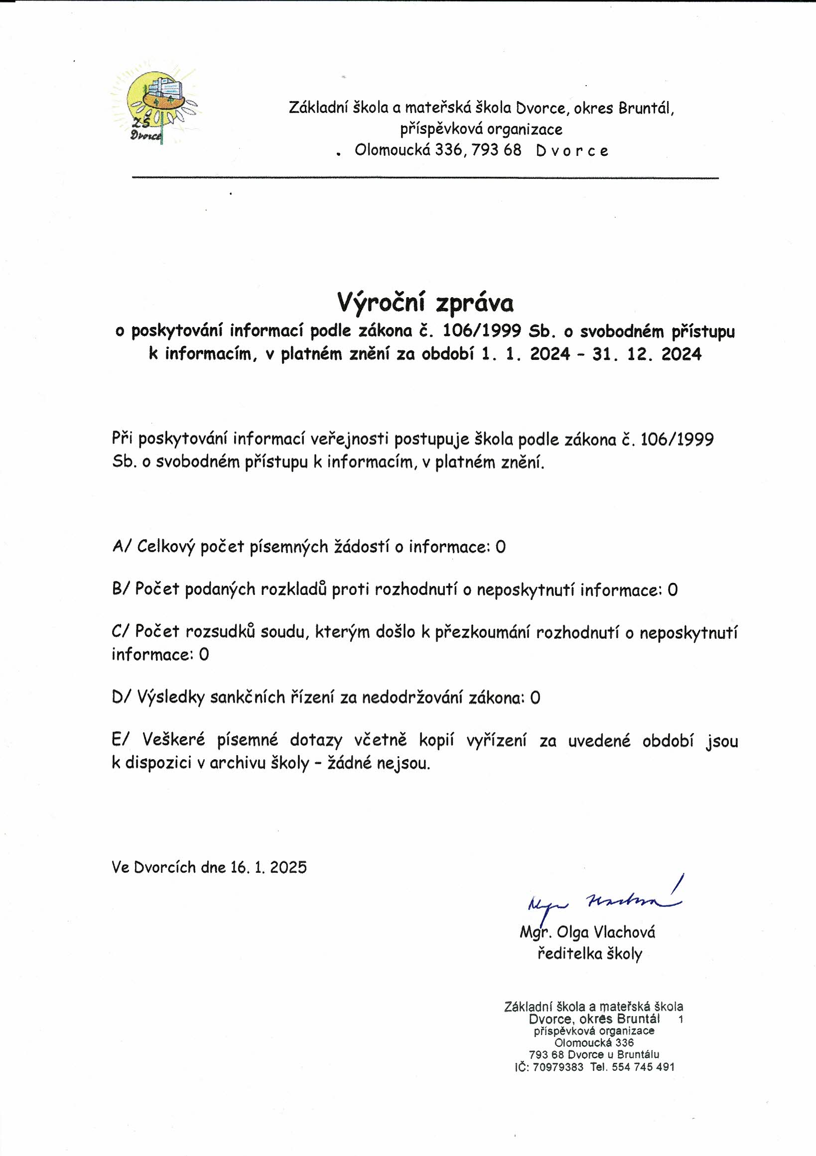 Výroční zpráva o poskytování informací 2024